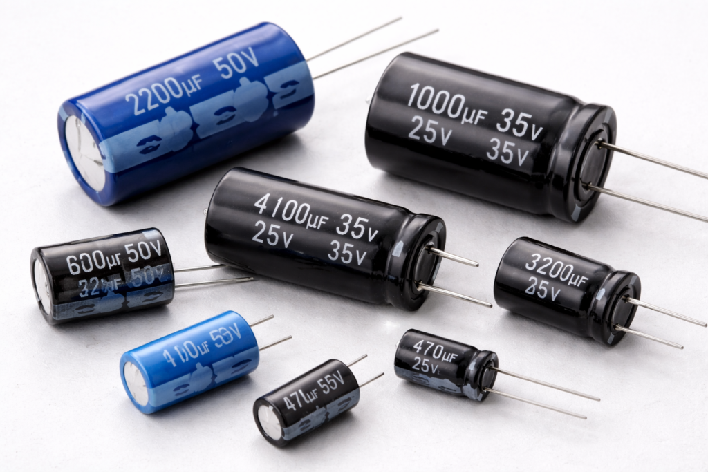 電解コンデンサは、電源や信号の“大きくてゆっくりした揺れ”を受け止めるための部品です。
